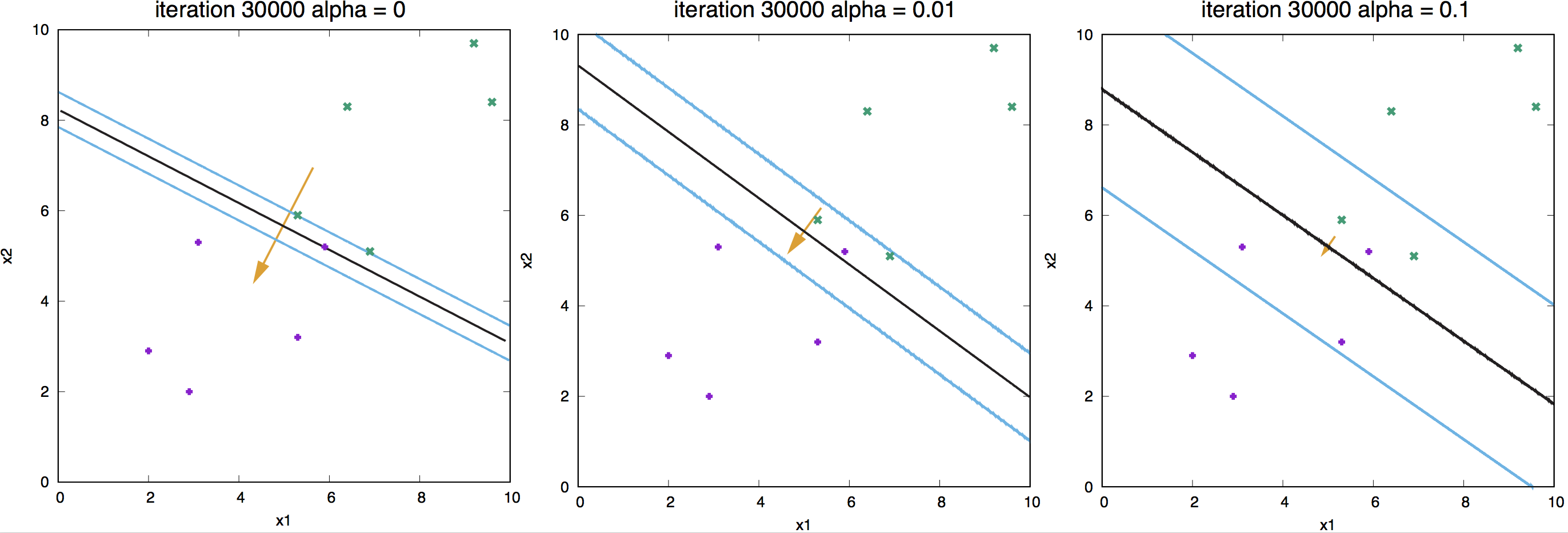 Figure 12. Effect of regularization for a linear neuron.