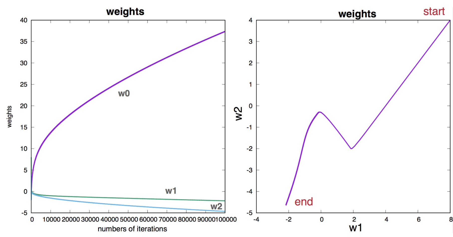 Alternative, we could update all weights, by taking one data point at the time. Start with a set of arbitrary weights \(\mathbf{w}_0\)