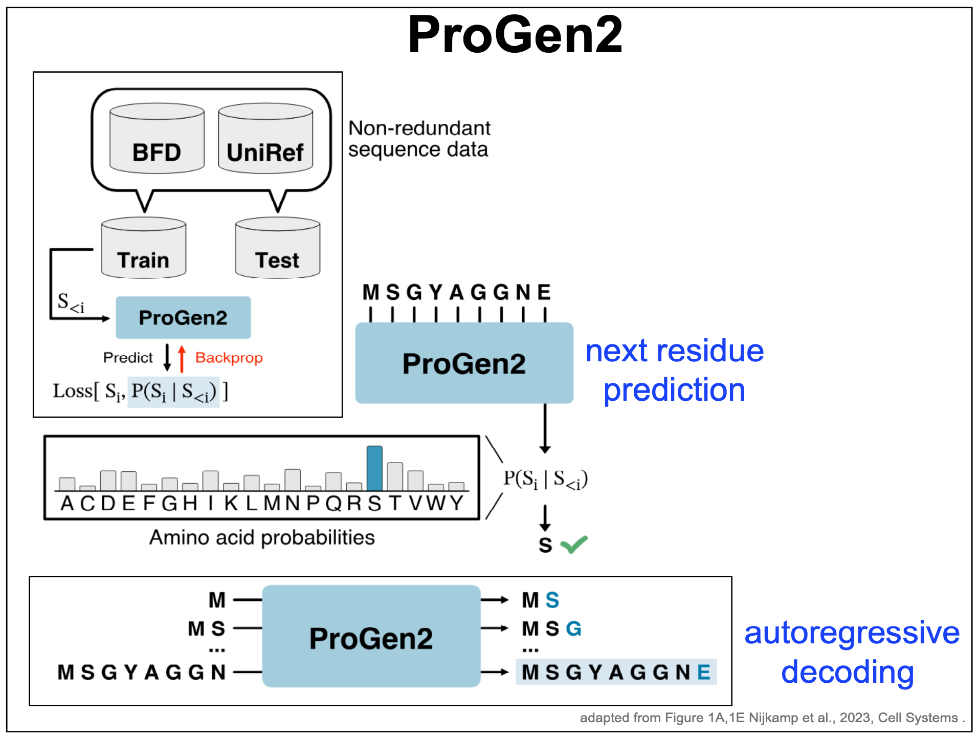 Figure 7. ProGen2 decoder for protein modeling. Adapted from Figure 1A, 1E from Nijkamp et al. 2023.