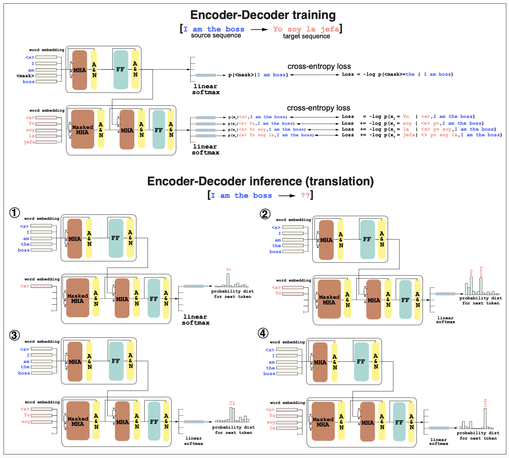 And the process continues with the next word probability conditioned on “I am the boss” and “Yo soy”, until an \("<end>"\) token is reached. (Figure 4 bottom).